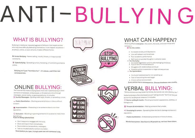 The week was led by Mrs Monan, our PSHE teacher, who encouraged students to reflect deeply on the impact of bullying and express their ideas through a variety of mediums. The event brought together students from all year groups, showcasing their creativity and commitment to building a more respectful school community.